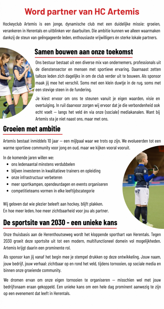 Locatie trainingen + wedstrijden: Herenthoutseweg 122, 2200 HerentalsE-mail: info@hcartemis.beFacebook: https://www.facebook.com/hcartemis
