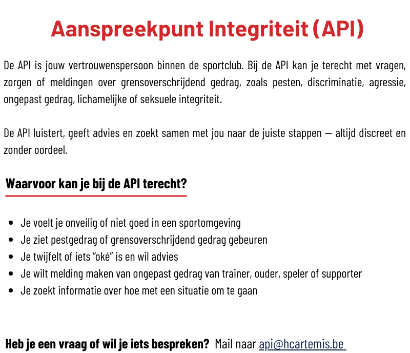 Locatie trainingen + wedstrijden: Herenthoutseweg 122, 2200 HerentalsE-mail: info@hcartemis.beFacebook: https://www.facebook.com/hcartemis
